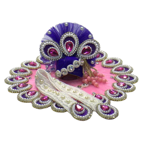 The pearl and soft pink color palette gives this set an elegant, devotional feel. Whether prepared for Janmashtami celebrations or daily puja rituals, this poshak brings a sense of care and devotion to the adornment ritual.