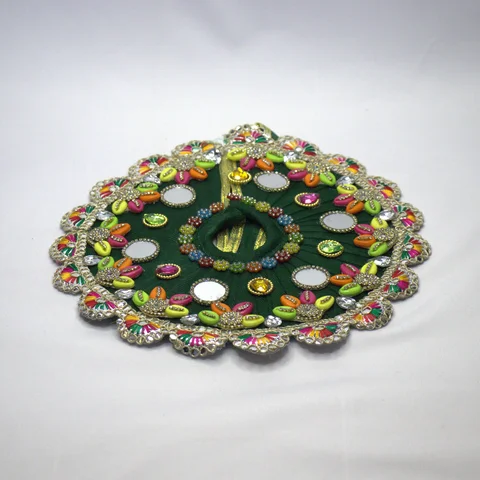 Dark Green Net Multicolor Shell Butti Mirror Work Shringar