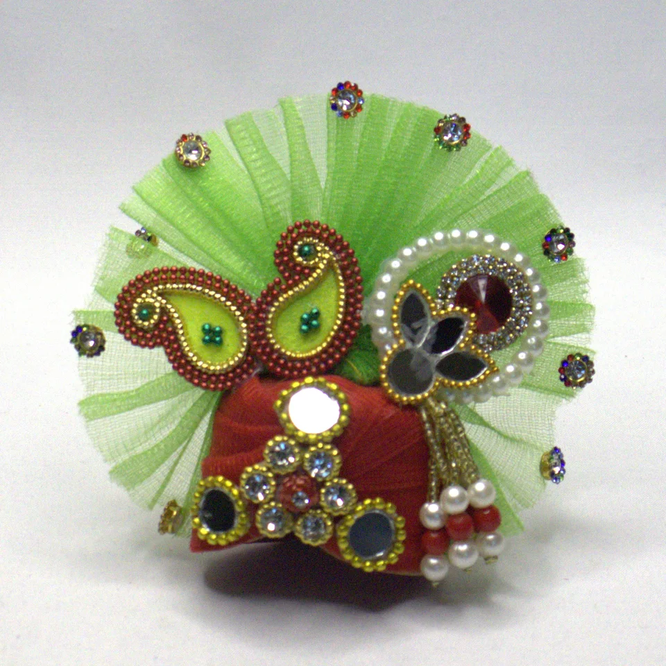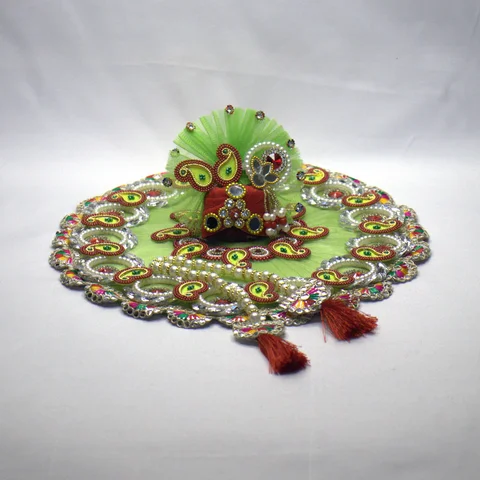 A refreshing lime green net poshak that brings a vibrant festive energy to Laddu Gopal Thakurji's shringar.