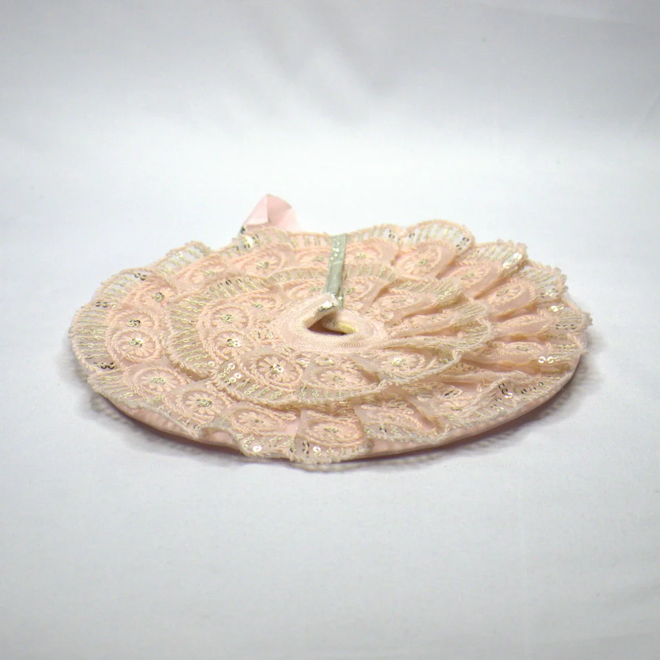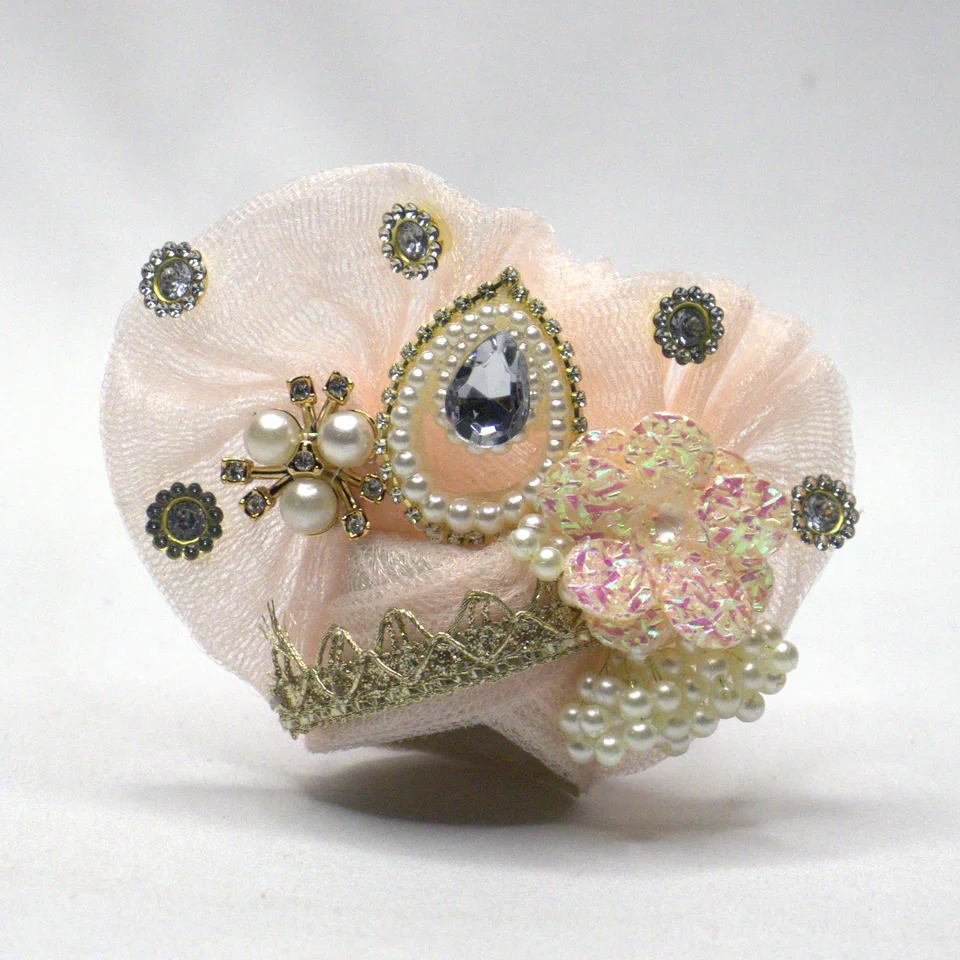Mukut features peach flower, golden lace and silver stone button.