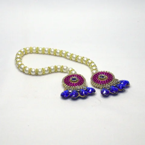 Pearl tassels hang from the mukut, adding movement and a traditional touch of pearl beadwork to the crown.