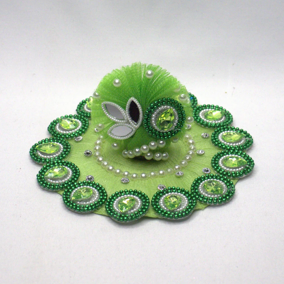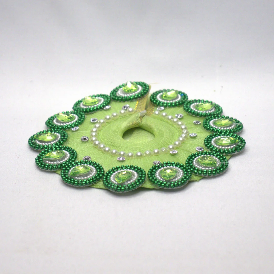 This elegant sea green net poshak brings a serene and divine quality to your Laddu Gopal shringar.
